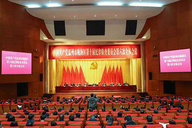 2月5日,瓯海区纪委十届六次全会举行。区委书记刘云峰在会上强调,要深入学习贯彻习近平总书记关于党的建设的重要思想、关于党的自我革命的重要思想,全面落实中央纪委和省市纪委全会部署要求,紧扣“十五五”规划开局起步关键节点,以永远在路上的坚定执着,纵深推进全面从严治党,为瓯海高质量发展提供坚强政治保障。