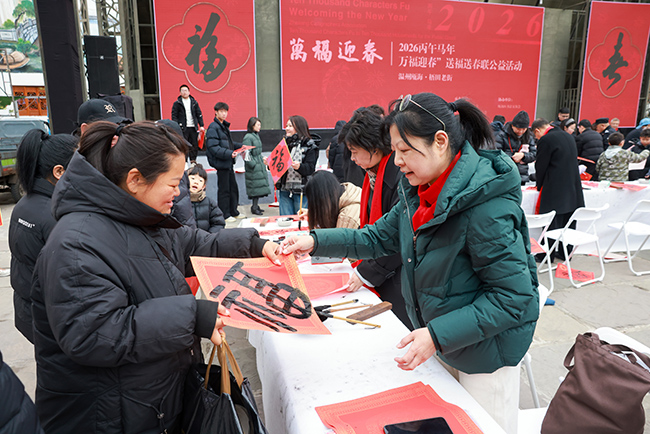 新春将至,年味渐浓。2月7日,2026年丙午马年“万福迎春”文化惠民活动在瓯海区梧田老街举办,将美好的新春祝福凝于笔端,免费赠予广大市民。