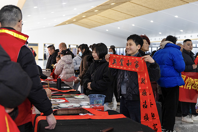 当天,另有160名贵州籍在温务工人员包车同步返乡。截至目前,铁路温州南站已在春运期间陆续为6批次、1200余名外来务工人员统筹办理返乡车票,精准破解务工人员返乡难题,以实打实的暖心服务,全程守护每一位奋斗者的新春团圆归途。车站还同步举办志愿者现场书写春联、糖画制作等特色活动,其中瓯海区泉川艺社已连续18年开展送春联公益服务,为群众送上浓浓新春祝福。