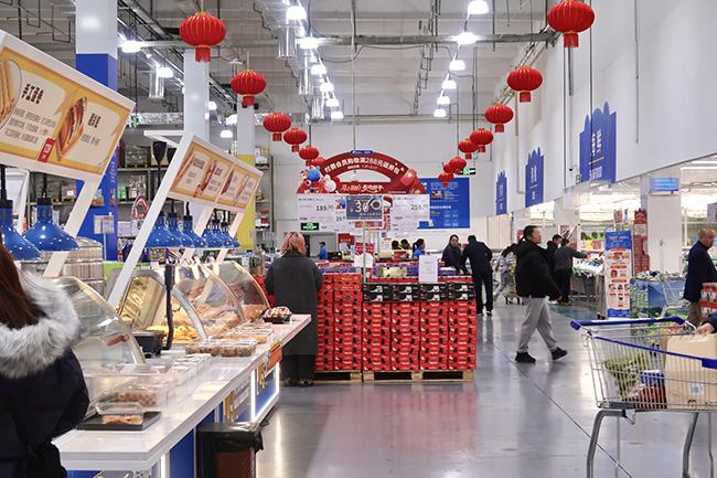 上班族李怡夫妻俩趁着午休抓紧来补齐年货,他们购物车里放着礼盒装牛乳燕麦片、智利车厘子等,还放着口水鸡、猪耳朵等熟食。“今晚到爸妈家吃饭,不仅买了送长辈的礼品,还买了自己平时爱吃的熟食一起带去。”李怡说。