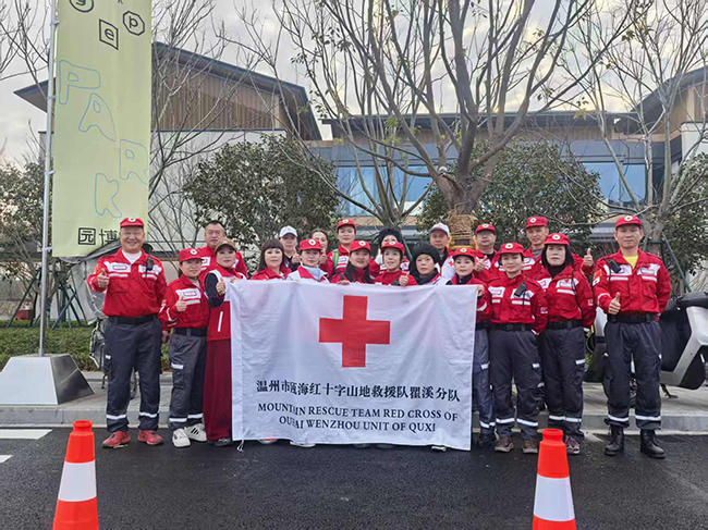 2月14日,温州园博园正式开启试运行第一天,瓯海区红十字会山地救援队瞿溪分队积极响应号召,组织20名骨干队员进驻园区,全面开展志愿服务与应急保障工作,以专业的素养和饱满的热情,为游客安全、有序游览筑起一道坚实的“红十字防线”。
