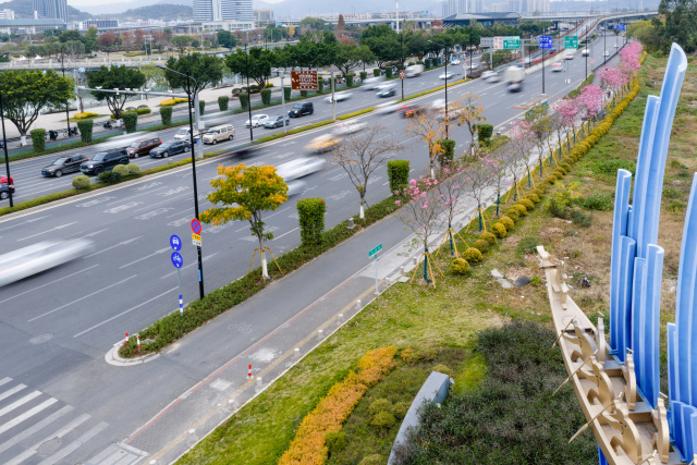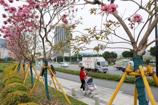 红花风铃木盛放有效弥补了晚冬早春开花植物偏少的空白,形成绵延亮丽的城市风景线,瓯海区也将持续打造“四季有花、色彩斑斓”景观效果。