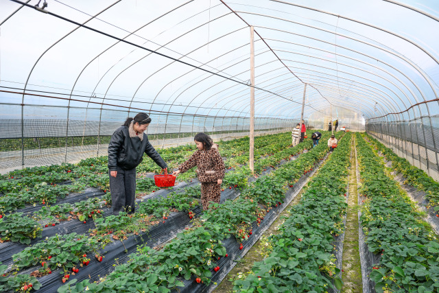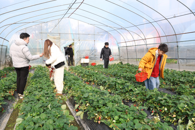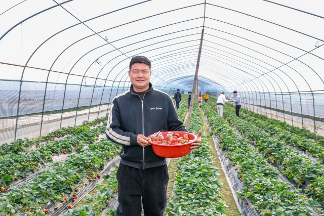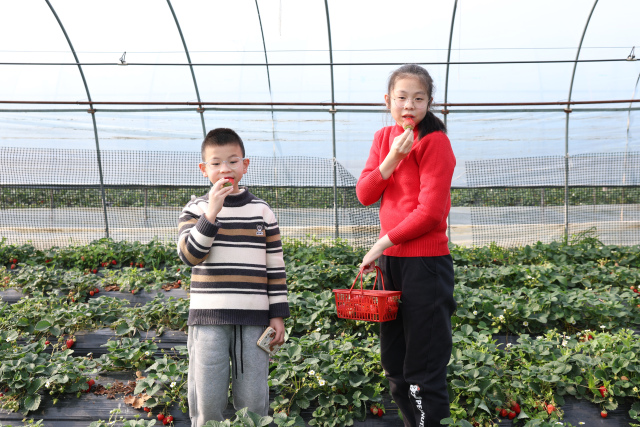 连日来,瓯海潘桥天天红草莓园喜获丰收,春节假期照常开放且价格稳定,市民游客可体验亲手采摘之乐。园中绿意葱茏,颗颗草莓饱满红艳,清香弥漫。无论亲子家庭还是结伴青年,皆可在此尽享田园野趣,感受新春惬意。
