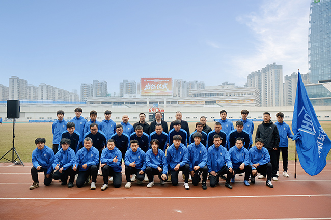 出征仪式上,瓯海队队员们身着统一队服,精神抖擞、身姿挺拔,展示了昂扬的斗志与团结的精神面貌。他们皆是来自各行各业的足球精英,其中年龄最大的48岁,最小的仅17岁。“现在的心情非常激动,我们训练了这么久,目标就是去赢得奖牌。在赛场上,我们一定会全力以赴,绝不辜负大家的期望。”队长张繁告诉记者,“作为瓯海运动员,我们将发挥强强组合的优势,凝聚团队力量,相信在本次比赛中一定能有所斩获,展现瓯海体育人的风采。”
