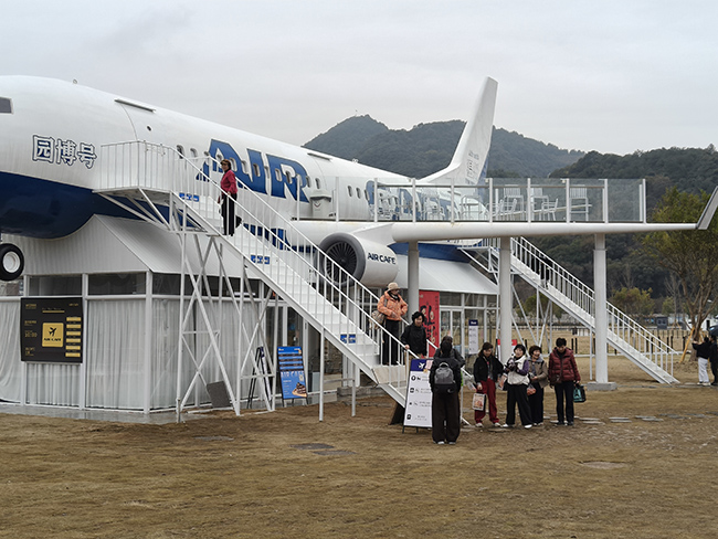 为了将园博园与铁路温州南站无缝衔接起来,瓯海特意谋划建设站西绿轴,直接连通动车南站西广场与园博园南园,展会期间将有专用接驳车。记者看到,站西绿轴边上园博植然营里的AirCafe人头攒动,独特的飞机造型成为吸睛亮点,不少游客排队拍照打卡体验,成为游园途中的惬意休憩点。“一到南园,就被旁边的园博号飞机吸引住了,坐在机舱里喝咖啡吃甜品,窗外便是绿意盎然的园景,氛围感拉满!”市民齐女士赞叹道。“从北园试运行,我们也就开始试营业了,以飞机元素饮品、餐点为主,价格从十几元到三十几元,还是很受市民、游客欢迎的,春节期间每天大概都能有几千人,南园试运行之后我相信人流量还会继续往上升。”AirCafe主理人李建介绍道。