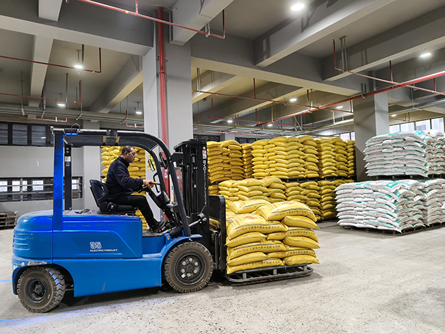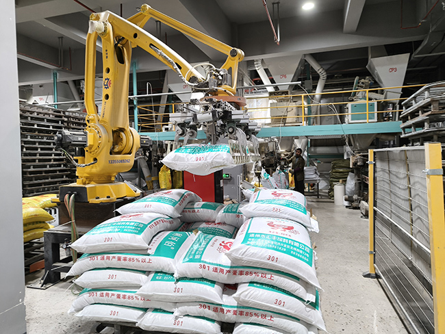 不仅如此,如今的温州市汇丰饲料有限公司新厂区,智能化场景随处可见。机械手精准挥舞,将一袋袋新鲜出炉的饲料稳稳抓取、整齐码堆;叉车穿梭往来,将成品快速转运至仓库;中控室内,工作人员轻点鼠标,猪料、禽料各两条数字化生产线分工明确,按预设程序高效运转,从原料投料到成品出库全流程闭环管控。“这次搬迁我们总投入7000余万元,更是借此次契机花费2000万元专用于引进国内先进自动化设备,成为全市首家全流程智能化生产的饲料企业。”潘景芳介绍。