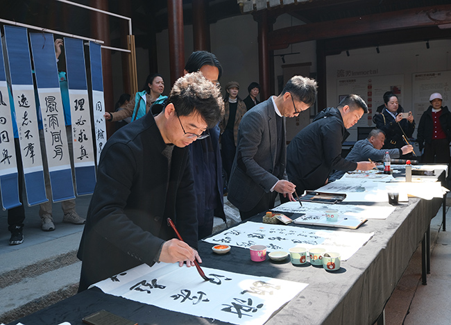2026年是民盟温州地方组织成立80周年。在“我为强城献翰墨”创作环节,盟内书画爱好者挥毫泼墨、以笔抒怀,用一幅幅主题鲜明、意境隽永的书画作品,展现心系温州、服务发展的赤诚情怀,为温州做强“一圈一极一中心”、建设现代化强城加油助力。