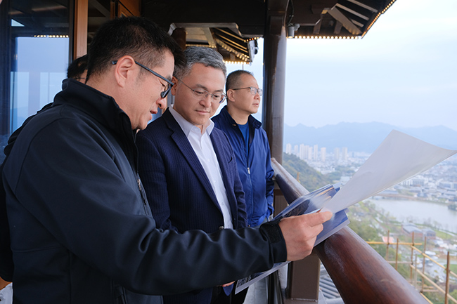 刘云峰一行还来到园博园北园制高点郭公阁、里屿垟花海,督查园博园周边环境整治情况与执法“一支队伍管执法”落实情况。刘云峰强调,要倒排时序、科学统筹,加快推进环境整治提升工作,同时注重整体性、协调性和美观度,推动周边环境与园博园风貌相得益彰;要整合执法力量,聚焦重点路段、重要节点,强化值守巡查,整治乱象问题,切实维护好园博园周边秩序。