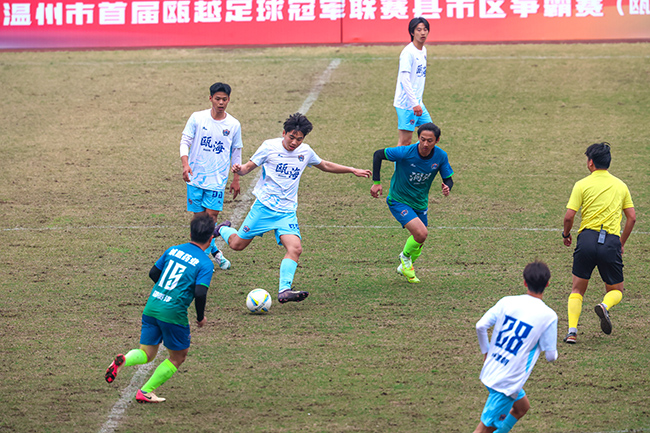 比赛开始后,瓯海队迅速进入状态,牢牢掌控主动权,全力拼搏、放开进攻,攻势一浪高过一浪,但洞头队防线稳固,战至半场结束,比分仍为0:0。下半场,易边再战,瓯海队攻势不减,双方都积极拼抢,第56分钟,瓯海队10号球员张繁射门中框弹出,随即跟进补射破门,拿下首分打破僵局。比赛尾声,第90分钟,张繁再次抓住机会射门,“梅开二度”将比分扩大为2:0。终场哨响,瓯海队以2:0比分战胜洞头队。