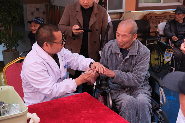 “在今天这场活动中,我们了解到入住养老院的老人多患有高血压、糖尿病、脑梗后等常见老年病。针对这些情况,我们运用针灸、拔罐、放血、穴位敷贴等安全易行的中医技术为老人调理施治,同时手把手教授简单实用的按摩保健方法。这些疗法操作简便、行之有效,十分适合老年人日常保健与康复调理。”项建设介绍。