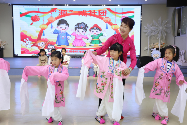 3月26日,瓯海区机关幼儿园“源”戏社团迎来“越剧启蒙第一课”。景山婉韵文化驿站的戏曲老师为萌娃们带来一堂生动有趣的戏曲体验课。作为深耕传统文化教育的园本实践,该园依托“源”戏社团,将戏曲艺术融入幼儿日常。课堂上,戏曲老师以深入浅出的方式带领孩子们识戏服、学身段、练唱腔,在童声与戏韵的交融中播撒传统文化的种子。