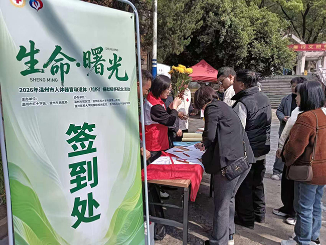 4月2日,2026年温州市人体器官和遗体(组织)捐献缅怀纪念活动在瓯海开展,瓯海区红十字会现场作入库登记宣传活动,呼吁更多人参与到这项大爱事业中。