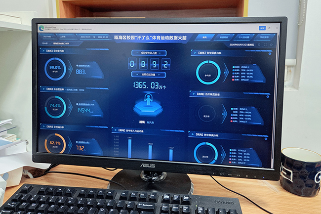 对于教师而言,AI体育设备的投入使用,也为他们日常教学带来了便利。“我们现在可以做到多组学生同时测试,也不需要像以前一样掐秒表。”该校体育老师陈骁捍介绍,以往长跑测试需要人工掐秒表、手工登记,如今依靠AI设备的人脸识别和实时记录功能,每次测试数据都会自动同步至瓯海区“汗了么”体育运动数据大脑,既减少了人工误差,也大幅提升了测评效率。