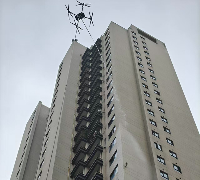 上午9时许,瓯海区某小区24层居民楼突发火情,由于起火房门紧锁,内部情况不明,传统内攻救援难以快速推进。“启动载重无人机,从外围压制火势!”现场指挥员根据火情迅速调整战术,下达作战指令。