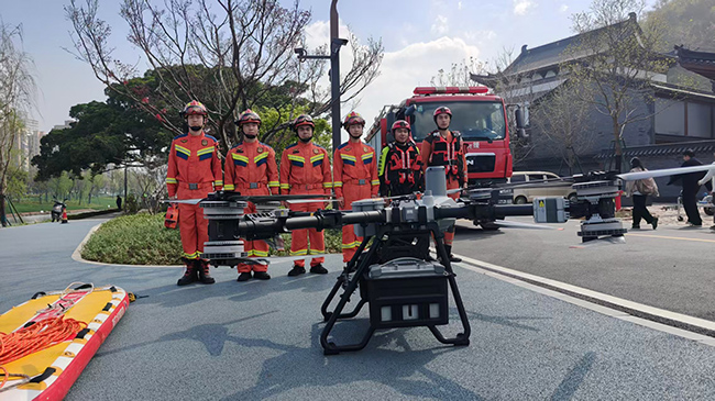 据悉,该无人机是瓯海区消防救援大队通过政府“交钥匙工程”配备的全省首台同类装备,最大载重80公斤,具备高空灭火、物资抛投、现场侦察等功能,搭载的智能避障系统,能有效应对复杂高空环境,精准破解高层建筑灭火救援的“瓶颈难题”。