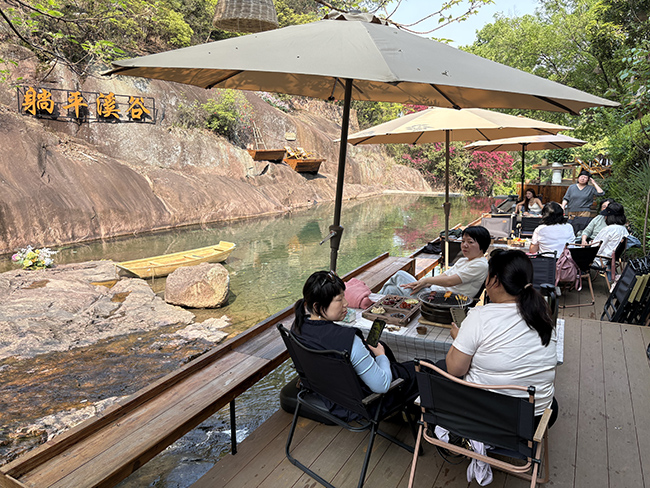 这种“无所事事”的权利,恰恰击中了都市年轻人的心理需求。据朱建西介绍,开业以来市场反响相当不错,回头客很多,“一些老顾客一个星期来一两趟都很正常,朋友带朋友,尤其是年轻人特别追捧这里,觉得环境很放松、很治愈。”天气好的时候,周末基本天天爆满。即便不是节假日,“只要天气好,工作日我们也挺忙的。”朱建西提醒计划前往的游客,最好提前预约。由于市场反响良好,座位供不应求,朱建西决定拓展场地,他介绍说:“我们在溪流下游又承包了1万多平米,打算开发起来做大型团建用地。”现在设计都已经做好,等五一假期过后就开工。