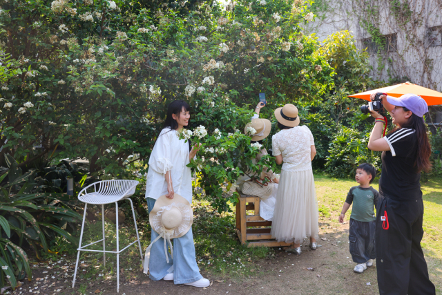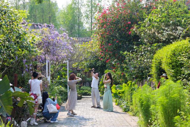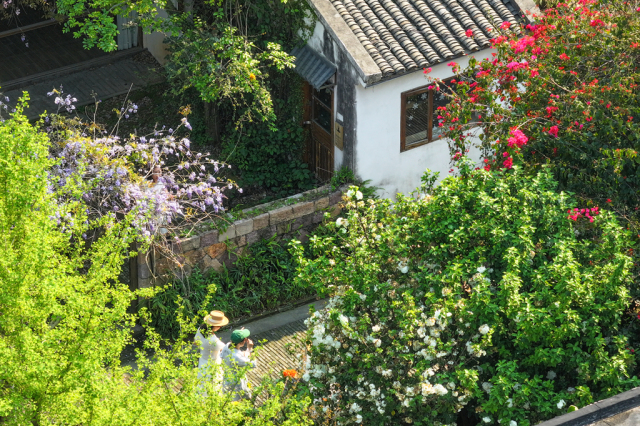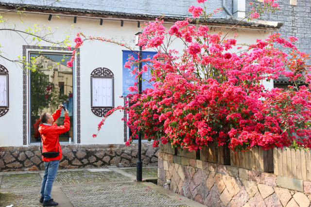 时值四月,春暖花开。4月9日,位于瓯海区茶山街道的山根艺术村,绣球与三角梅开得正盛,吸引市民游客打卡拍照,为这座依山傍水的江南古村增添了几分春意。