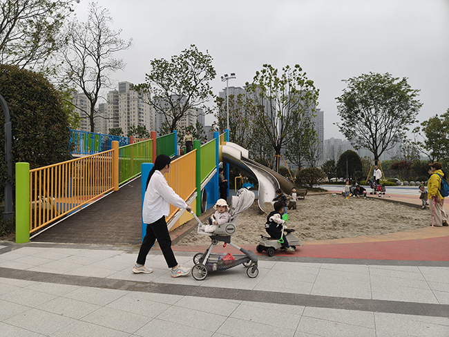 “以前这里又脏又乱,现在整洁又漂亮,每天都想来转转。”居住在周边的市民戴先生看着玩耍中的孩子满脸笑意,“不仅居住环境变好了,孩子也多了一个玩耍的地方,我一有空就带她来,十分方便。”“我们一路从园博园北园走过来的,孩子看到这里就迫不及待跑进去玩了,还认识了不少新朋友。”市民吴女士对设施赞口不绝。