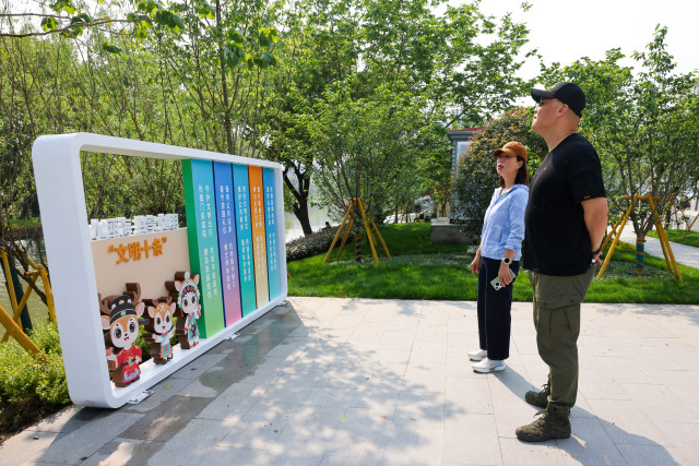 景观小品不仅是城市靓丽点缀,更是城市文明的“代言人”。在营造全城园博氛围的过程中,巧妙植入“文明游园言行有礼”“文明泊车”等文明宣传元素,引导广大市民自觉践行文明好习惯,以主人翁姿态迎接八方来客。随处可见的文明引导标识与吉祥物景观一同组成了一道流动的文明风景线,让一草一木皆成风景、一街一巷尽显文明。