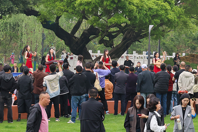 本届园博园设有1个中国园林经典主题园、34个城市展园及6大主题展区,一步一景、一园一韵,将江南园林的婉约雅致与温州山海风情完美融合。开园以来,市民游客扶老携幼、结伴而来,在繁花绿树间漫步赏景、拍照留念,处处洋溢着轻松愉悦的氛围。“年前来看的时候花草还没有这么多,现在可以说是‘春色满园’。”温州园博园的“常客”刘女士表示,园区景色优美、活动丰富,“让人有空就想来溜达溜达。”