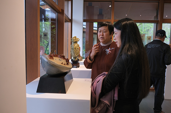 陈顺德则是浙江省非遗石雕代表性传承人,其带来《温州二十四节气》系列石雕,以二十四节气为时间轴,巧妙地串联起温州一年四季的自然变化和人文景观,展现出温州地域文化与自然风貌。“这个作品历时三年创作,上个月刚刚完成。”陈顺德表示,作品在园博园展出,也是向世界展示和推广温州石雕的良好契机。