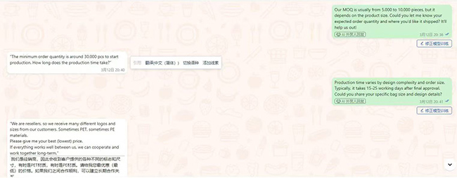 作为星谷云在温州的本地化运营中心,温州芽尖信息科技有限公司凭借私域化AI智能体,正成为温州外贸企业“降本增效”的关键助力。“在服务企业过程中我们发现,大量外贸企业缺乏专业市场团队,业务员精力有限,线上线下流量割裂,存量客户无法盘活,AI正是破解这些痛点的最优解。”温州芽尖信息科技有限公司业务主管张晨曦介绍道,“与通用AI模版不同,我们打造的AI私域智能体,以企业内部销冠为沟通脚本、产品资料为核心,仅需两周时间,即可复刻销冠谈判逻辑的‘业务员分身’,连客户关心的‘定制周期’‘售后保障’这些细节都能精准匹配,实现“拟人化”高效对接。”