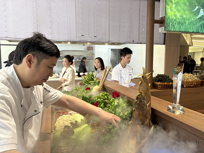 作为园博工坊内的亮点项目,“瓯越集小院”更强调食材的本土与新鲜,厨师长团队拥有20多年温州菜烹饪经验。负责人李源源告诉记者:“我们的蔬菜全都是自己种的,从田间到地头,直接到餐桌上,新鲜可溯源。本地鸡、温州鱼饼、温州鸭舌,温州特色菜我们都有做,欢迎全国所有游客来到园博园,到我们瓯越集小院做客,品尝地道的温州特色菜。”
