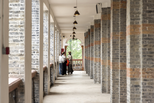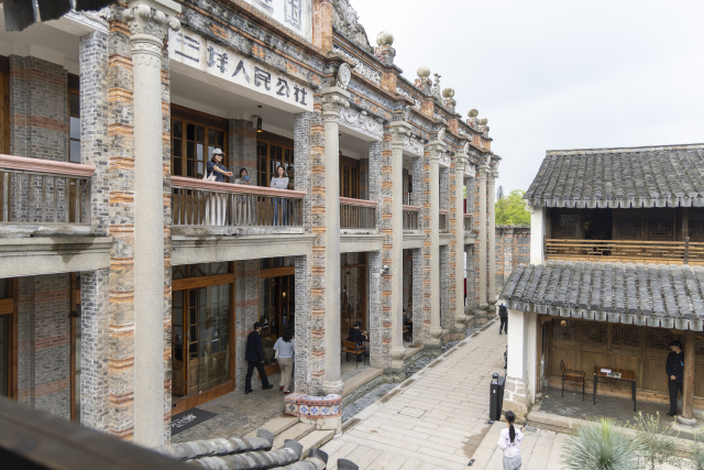 周氏旧宅始建于晚清至民国时期,由实业家周衡平斥资兴建,总建筑面积约2800平方米,是浙南地区现存规模最大的中西合璧式单体建筑之一。其建筑主体采用三进院落布局,砖混结构主楼面阔九间,四面回廊贯通。建筑细节极具匠心:青红砖清水墙工艺形成优雅线脚,南立面爱奥尼柱式与北立面克林斯柱式交相辉映,券顶门窗及石英砂浆抹面等百年构件保存完好,堪称近代中西建筑文化融合的典范。晚清典雅的木构院落、民国时期中西合璧的走马楼,以及人民公社的时代痕迹,在此叠合交织。