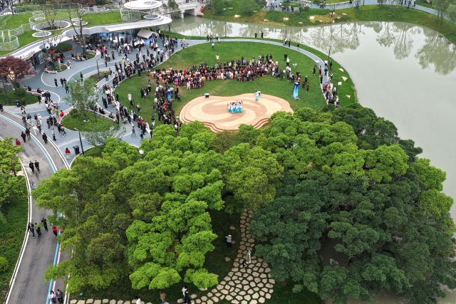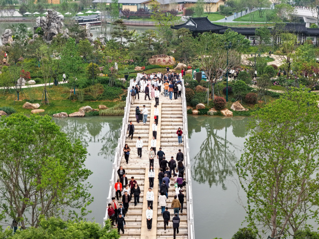 4月18日至19日是第十五届中国国际园林博览会开幕后的首个周末,温州园博园迎来客流高峰。久雨初晴,天朗气清,园内人潮涌动。据园方统计,开园首个周末人流量达27.94万人次,其中周日单日突破20万人次,创下开园纪录。