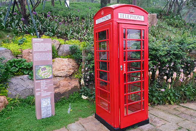 沿着展园小径拾级而上,首先映入眼帘的是一座鲜红的英式电话亭。相隔不远,伫立着一个镌刻着“GR”皇家徽记的红色邮筒。瓯海籍华侨林昌玲向记者介绍:“这两件是上世纪30至50年代的老物件了,我觉得把它们带回园博园,就会更有英伦气氛。”这两件英伦街头符号,正是林昌玲个人出资,从英国寻得并翻新的经典物件,经历了近三个月的海上漂泊,最终安家在这座2500平方米的陡坡之上。