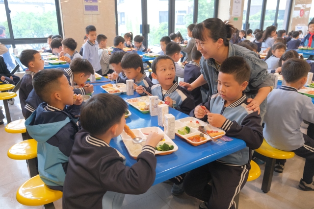 “看到学生们吃不下、不爱吃,我们也很着急,就想着推出自主选餐形式,把选择权交给学生。”温州高铁新城实验学校行政副校长周毓虹说道。现在,学校食堂每餐有6到8个菜品供学生选择,种类丰富、营养均衡,还有校长、老师陪餐,监督饮食安全。自实行自主分餐制以来,学校食堂就餐环境持续优化,学生光盘率大幅提升,以往随处可见的剩饭剩菜明显减少。“推出自助餐的同时,学校也推出了营养健康的课程,来帮助学生建立正确的饮食健康观,让勤俭节约的好习惯扎根心底。”周毓虹说。